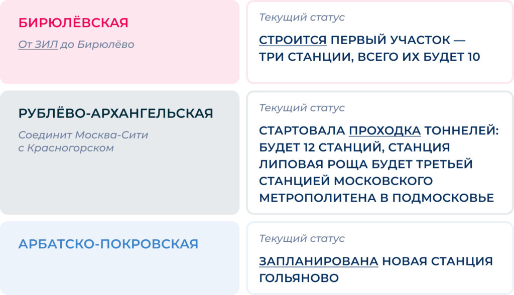 Развитие метро стало ключевым элементом транспортной политики Москвы за пределами исторического центра. Город сосредоточился на территориях, которые долгое время оставались слабо связанными с основной сетью, — прежде всего в Новой Москве и на юге столицы.