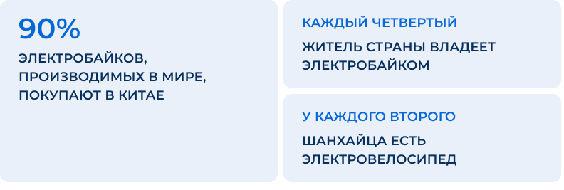 Китай — крупнейший производитель и потребитель электровелосипедов в мире.