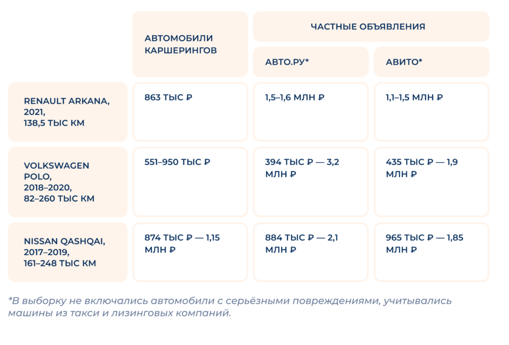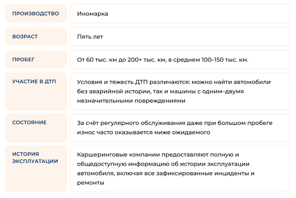 Несмотря на преимущества, автомобили из каршеринга часто выходят на вторичный рынок по цене ниже сопоставимых предложений того же года и пробега. Это объясняется особенностями бизнес-модели сервисов.