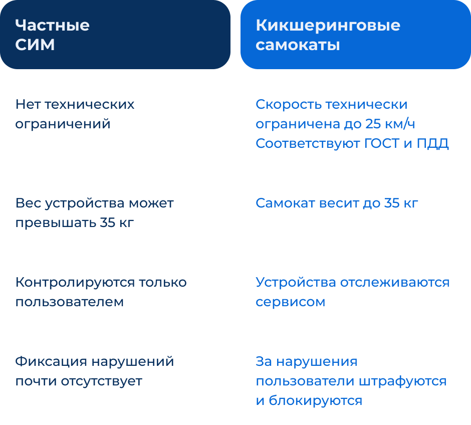 ПДД затрагивают две принципиально разные группы людей — пользователей арендных самокатов и владельцев частных устройств. При этом под категорию частных СИМ попадают и более быстрые и тяжелые устройства. Формально они считаются СИМ, но по мощности и весу ближе к мопедам.