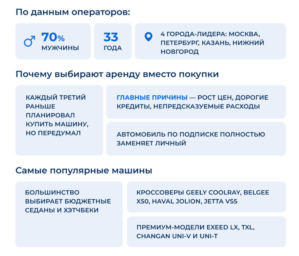 Автомобиль постепенно превращается из собственности в услугу. Многие предпочитают не владеть машиной, а брать её на время, как жильё в аренду. Кто-то пользуется каршерингом для поездок на дачу или по работе, кто-то — для путешествий или теста новых моделей.